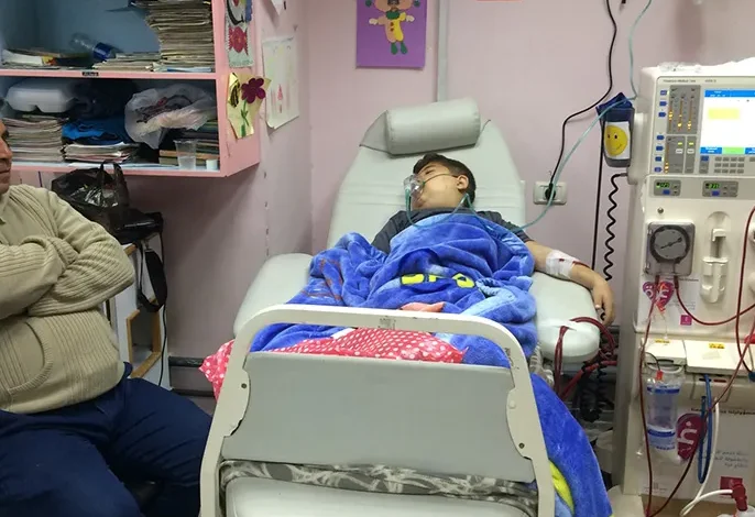 وما إن تنتهي عملية “الغسيل” التي يجريها برهوم (14 عاماً) المصاب بفشل كلوي، حتى يهمس بصوت خافت يختفي خلف ضجيج الأجهزة الطبية، مناديا والده “يلا يا بابا خلصت خلصت.. نادي عمو يفك البربيش (الأنبوب)” ليحضر الممرض ويفك الأنابيب التي تخترق ذراعيه الضعيفين وتتصل بجهاز غسيل الكلى.